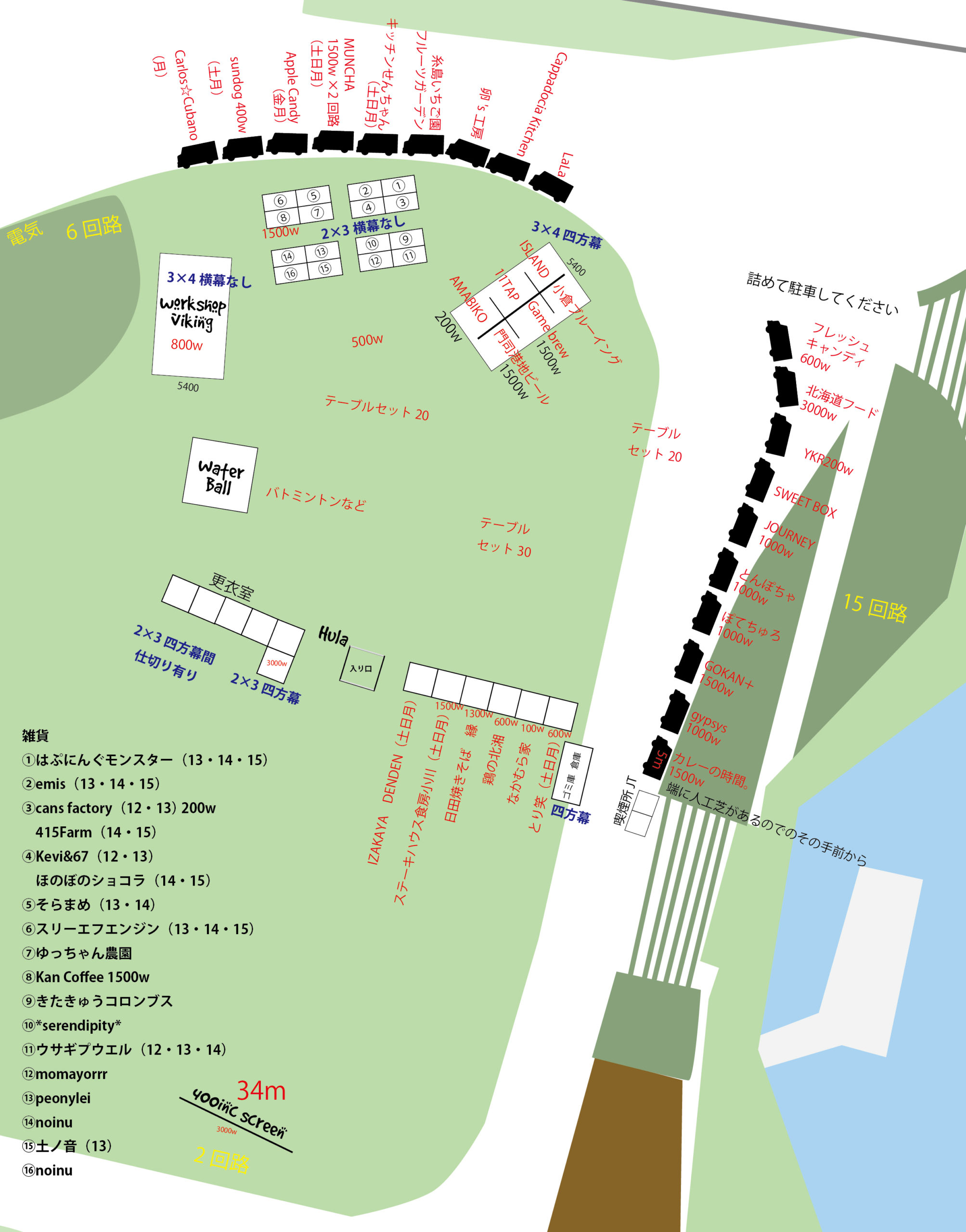 - 会場は強風が予想されます、事故が起きないよう万全の風対策ができる店舗運営で危険と判断した場合は速やかに看板等の撤去等、指示に従っていただきます。